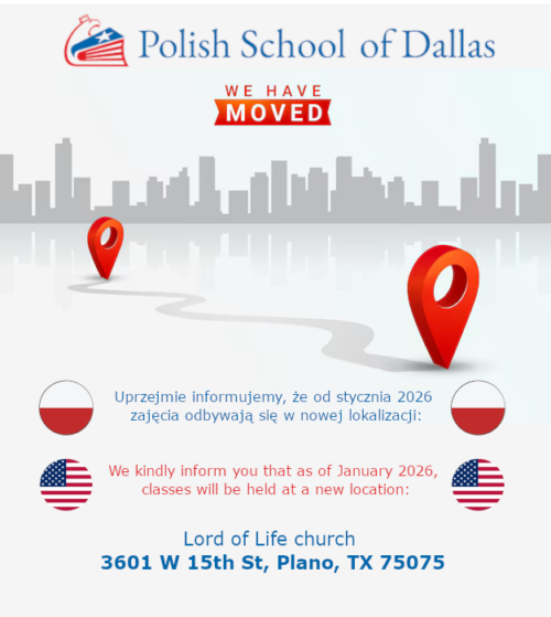 Drodzy Uczniowie, Rodzice i Przyjaciele Polskiej Szkoły w Dallas. Uprzejmie informujemy, że od stycznia 2026 zajęcia będą odbywać się w See More